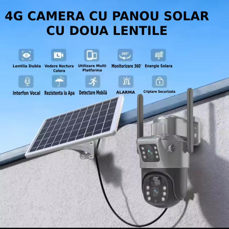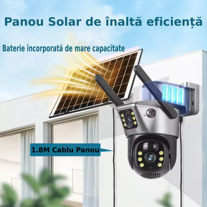 Camera de Supraveghere Color 4G Dubla 8MP Ultra HD cu Panou Solar – Vizibilitate extinsă și Autonomie completă, Oriunde