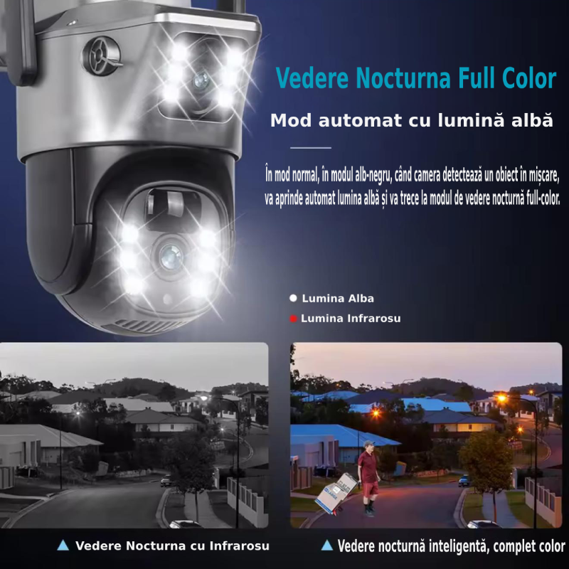 Lentilă dublă 8MP – Oferă imagini clare și detaliate din unghiuri multiple, cu rezoluție Ultra HD.