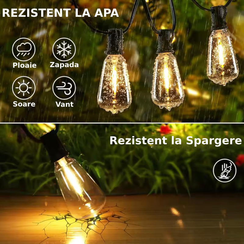 Ghirlande Luminoase Alb Cald 5 Metri, 10 Becuri este fabricată din material de înaltă calitate, rezistent la condiții meteorologice variabile. Designul robust asigură o utilizare de lungă durată, fără a-și pierde funcționalitatea sau frumusețea în timp. În plus, cu un consum redus de energie, este o alegere ecologică și economică pentru iluminarea spațiilor preferate